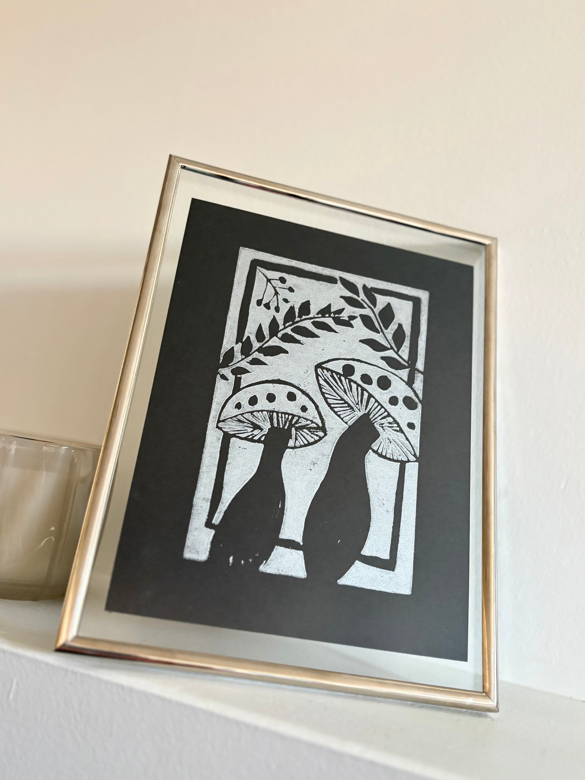 Fall Fungi - 4x6 print on 6x8 Black Paper (Metallic Silver Ink)